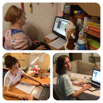 Heute durften sich die Rostower Kinder wieder auf die deutschen Schüler-Lehrer freuen. Die Freunde haben sich sogar am 2. Weihnachtstag vor den Bildschirm gesetzt um unbedingt Deutsch von authentischen Sprechern zu lernen. Tobias, Jannik und Felix (Namensnennung erlaubt) waren sehr gut vorbereitet. Ihre Präsentation enhielt viele Aufgaben für die Kinder: Chorsprechen, Nachsprechen, Rätseln und Suchen sowie Schreiben. Gleich zu Beginn wurde das Ziel gestellt: "Ihr sollt am Ende in der Lage sein, jeder einen eigenen Satz zu den Festen in Gera zu formulieren." Das hört sich sehr leicht an, aber die neue Lexik, die den Kindern als Arbeitsblatt vorlag, sollte aktiv verwendet werden.